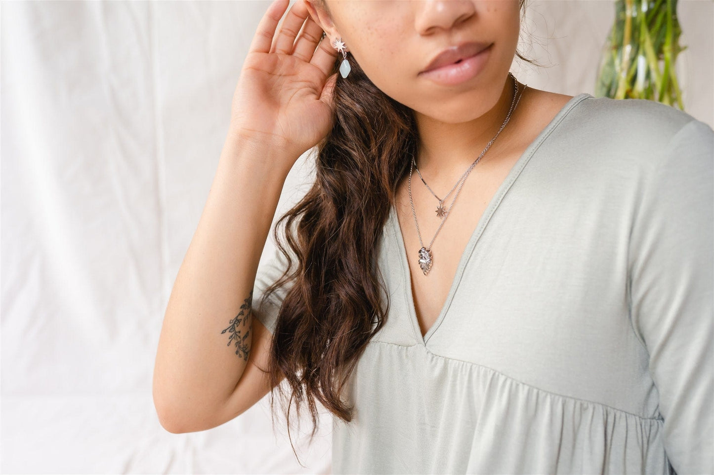 Effortless: Our rhodium star necklace can be layered or shines on its own. This necklace will blend from your day to night with ease. So good you will wear it with everything, trust us.