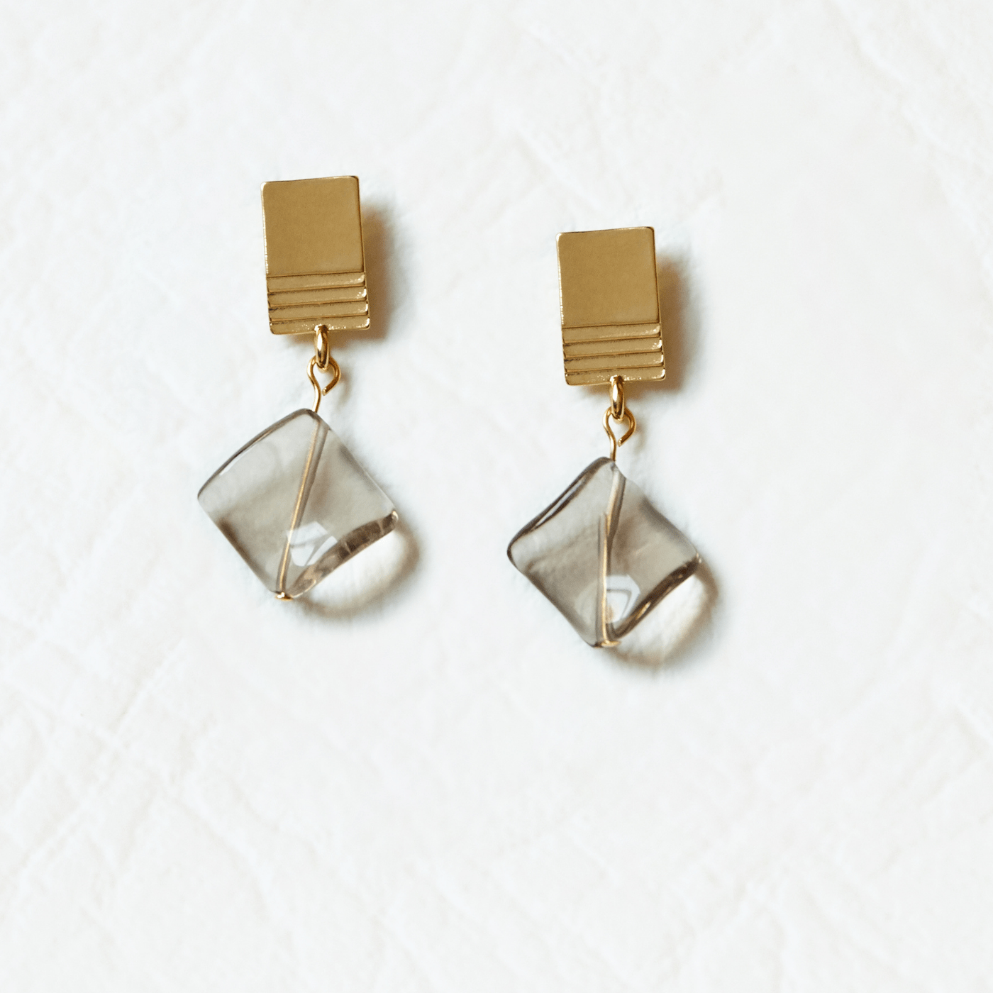 VUE by SEK Earrings gold layered square + twisted smoky quartz earrings