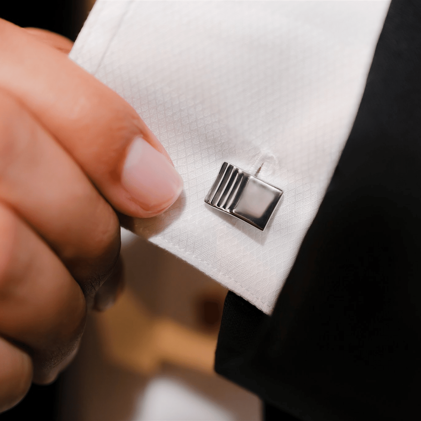 Our unique layered square style is now available in a sleek set of platinum cufflinks. This layered square cufflink pair is gift-ready in the signature navy VUE by SEK box. This set is a tiny luxury that will become an instant classic.